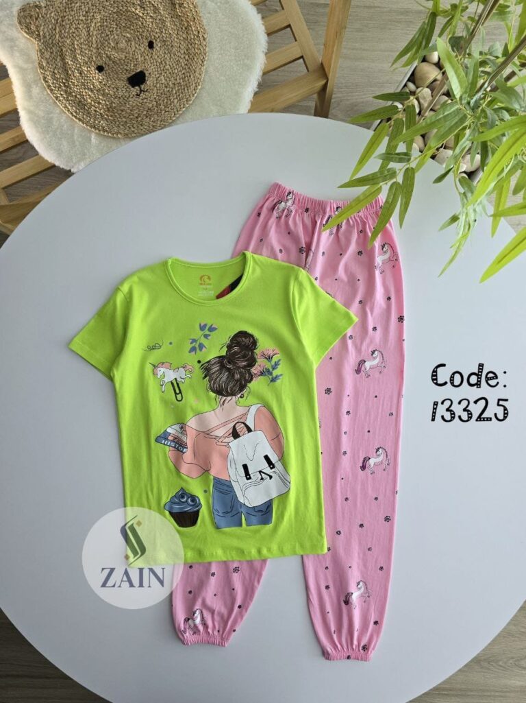 b2am محير بناتى بنت اخضر بنطلون اصفر عباد